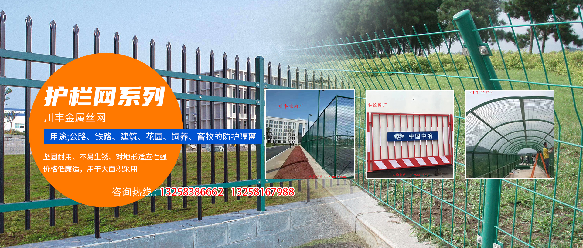 企業簡介 四川川豐金屬絲網制造有限公司是四川省專業生產銷售鋼絲網、隔離柵及各種金屬篩網的廠家,公司擁有內部先進的數控大型自動鋼絲排焊機,流水線浸塑型設備,專業裹塑機,電焊網片機,重型菱形鋼板網機器,...